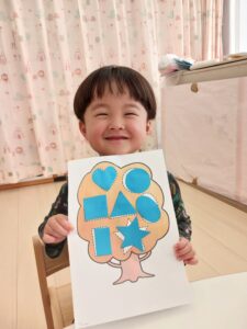 3種類の表情を英語で答えたり、色々な形を紙にのりで貼ったりして楽しみました🥰