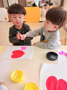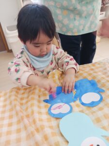 ぱんだ組さんはサークルタイム、うさぎ組さんは製作、
