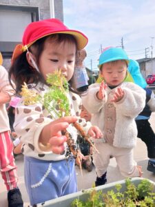 ひよこ組さんはままごとあそびの後に、プランターで育てた人参を収穫しました🥕