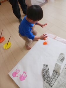 今日はぱんだ組さんは、サークルタイムでみんなの手形を取りました✋